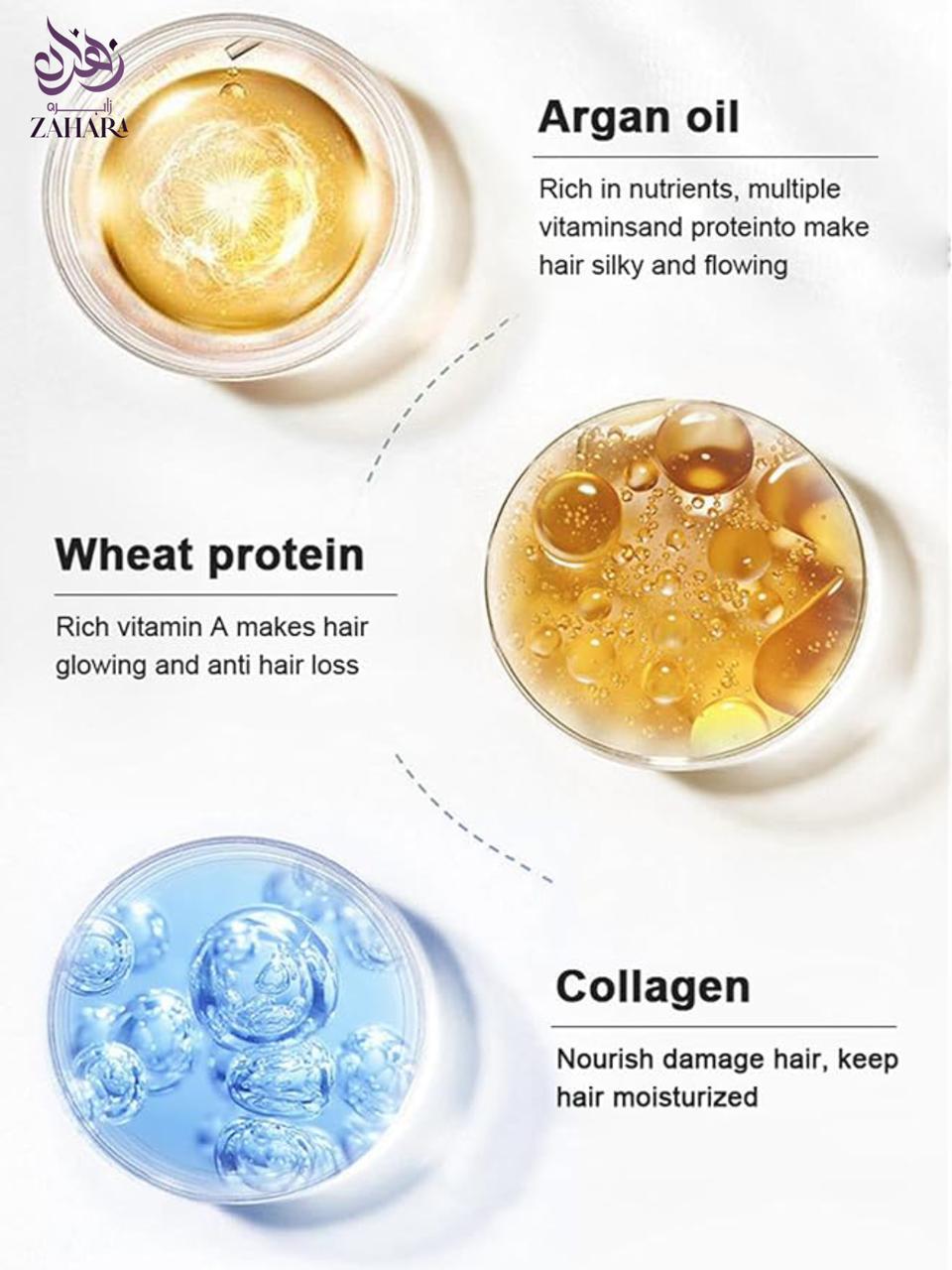 ماسكنا للشعر يعيد الحيوية لشعرك من خلال مزيج فريد من المكونات النشطة، حيث يزوّده بالكيراتين النقي إلى جانب زيت جوز الهند الطبيعي، وزيت الأرجان، وحمض الأوليك مباشرة إلى الجذور.